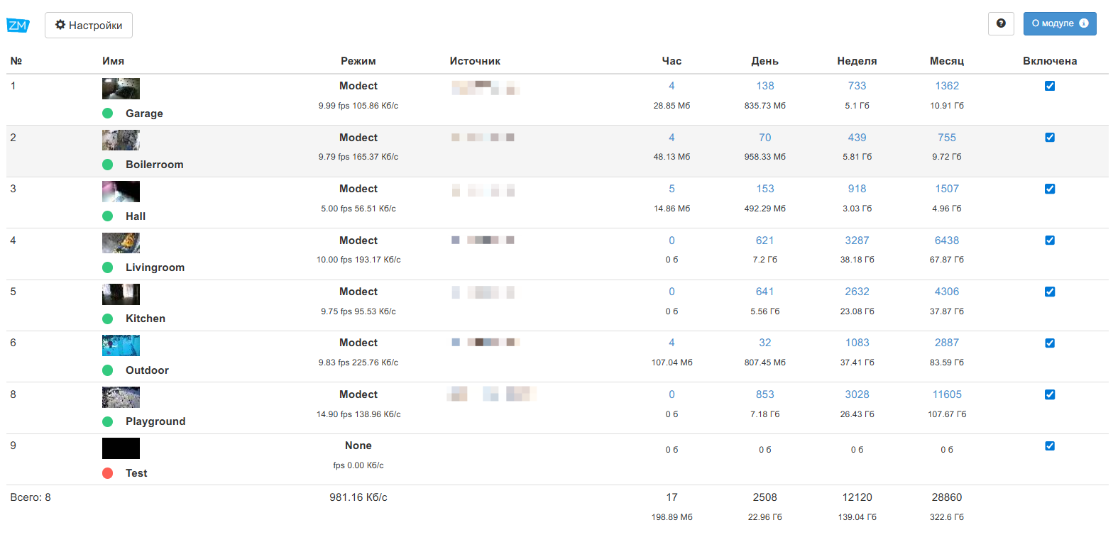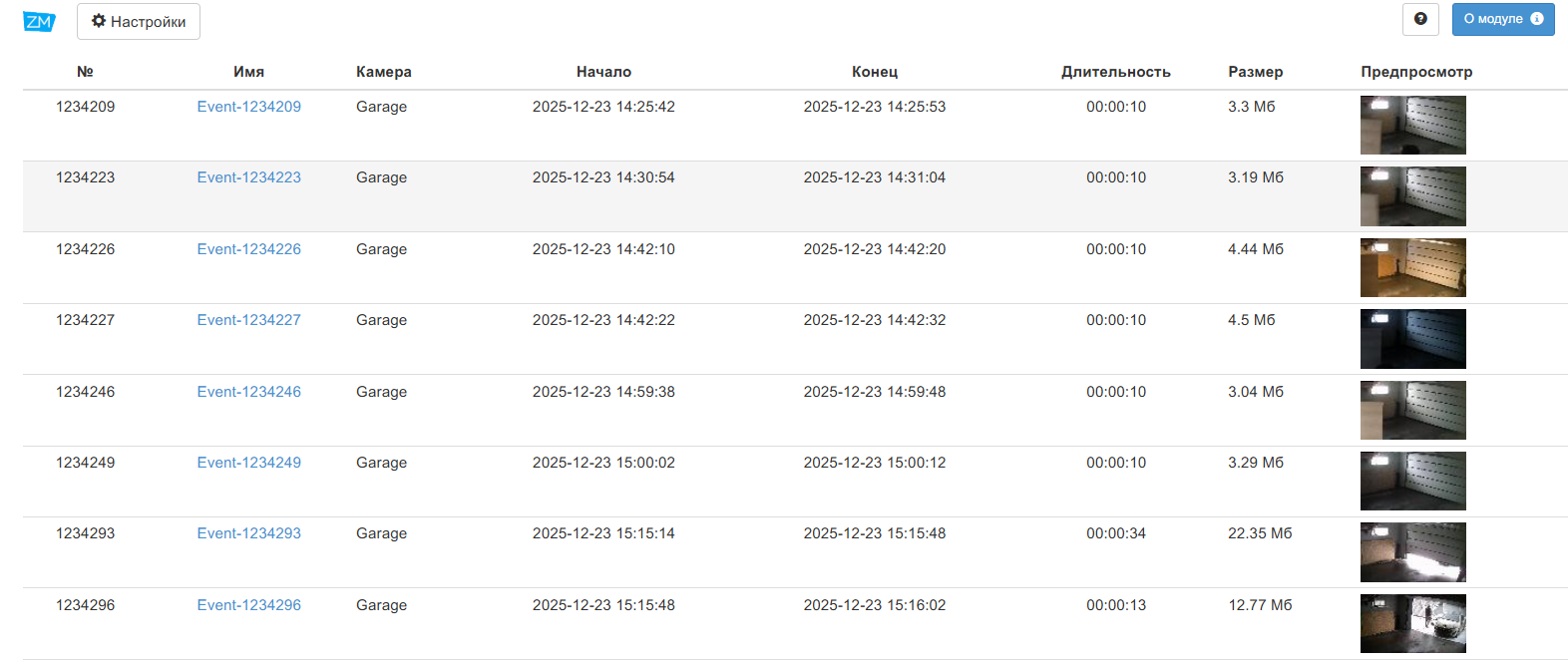 Модуль для отображения камер и их событий из системы видеонаблюдения Zoneminder.
